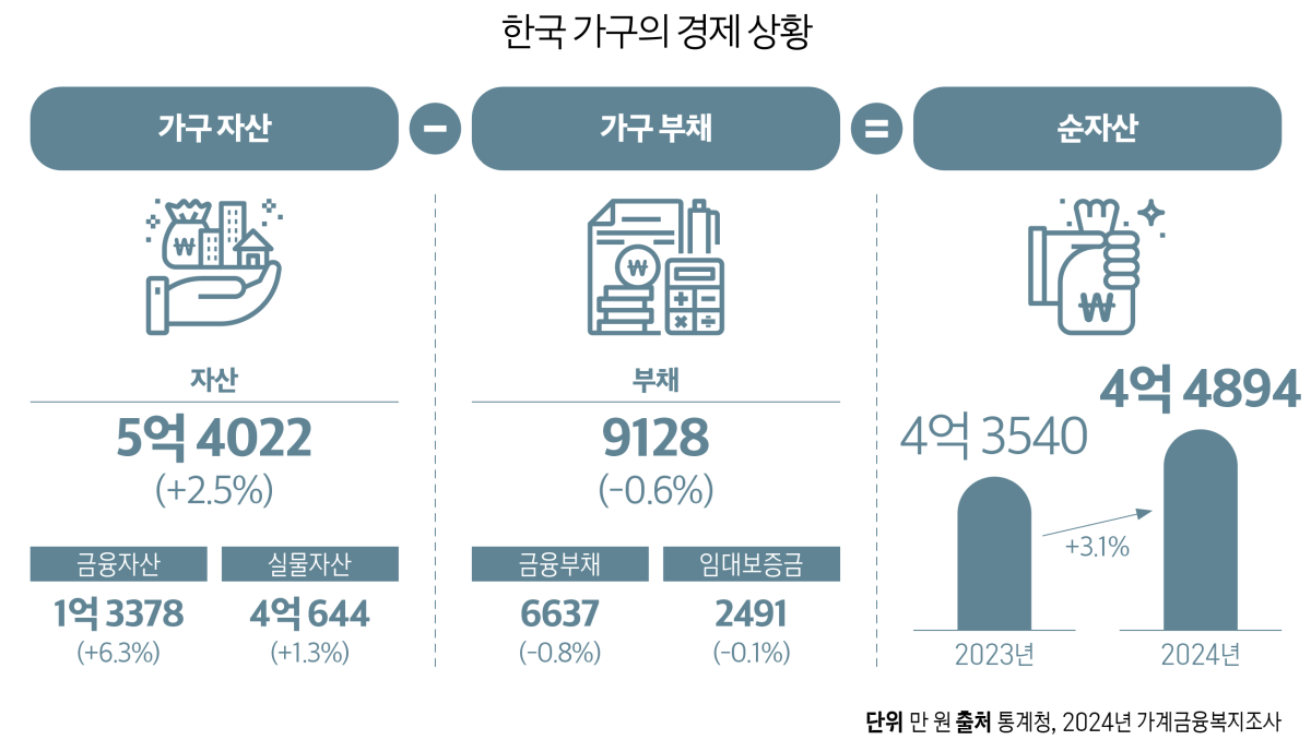 60세 이상 가구의 전체 자산 중 부동산은 78.5%를 차지하며, 65세 이상의 경우 82.4%에 이른다. 이는 미국(30~40%)이나 일본(50~60%)에 비해 훨씬 높아 ‘부동산 편식’으로 불리는 배경이다. 2025 자본시장연구원 보고서에서도 고령 가구 자산의 60% 이상이 실물자산으로, 금융자산 비중은 22%에 불과하다고 지적한다. 이 구조는 의료비(1인당 평균 8100만 원)와 자녀 결혼자금(1인당 1억 원 이상) 같은 지출에 취약할 수밖에 없다. 부동산은 유동성이 낮고 매각할 때 세금·수수료 부담이 크며, 가격 변동성으로 자산가치가 변할 수 있기 때문이다. 따라서 전체 자산에서 바로 현금화 가능한 자산의 비율을 높일 필요가 있다.