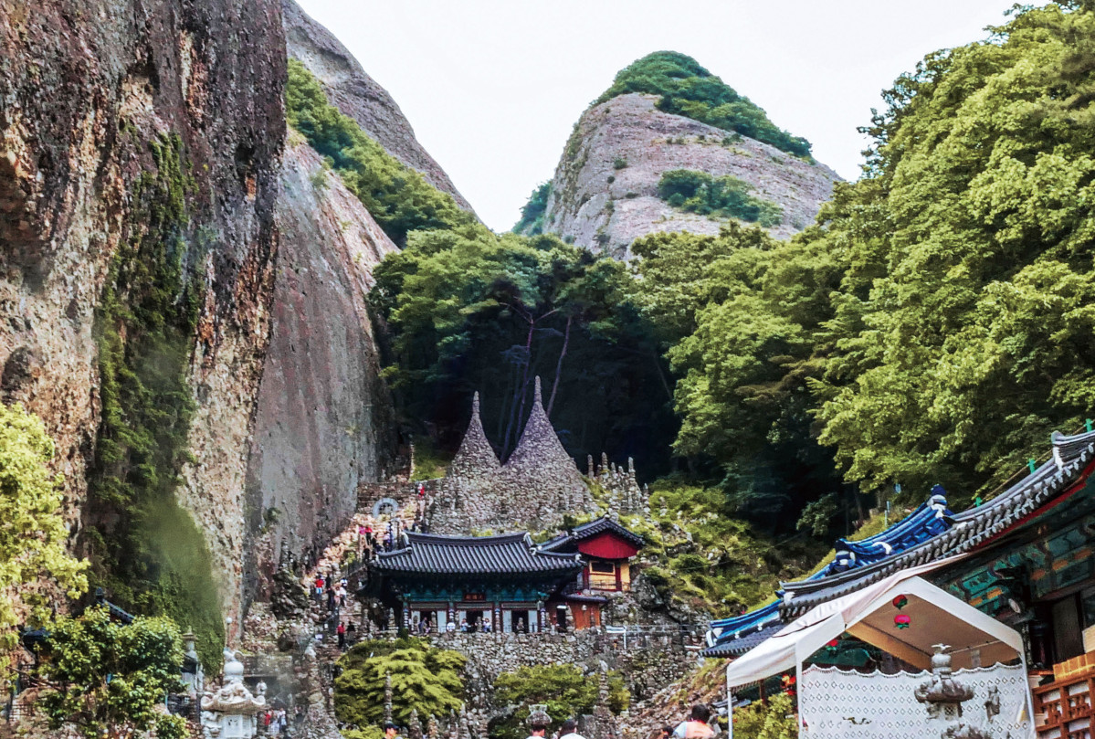 마이산에서 기이한 돌탑을 거느린 탑사를 빠뜨릴 수 없다. 조선 말기의 기인 이갑용 처사가 쌓았다는 설이 전해지는 80여 기의 돌무지 탑이다. 긴 세월 심한 기후변화나 비바람 속에서도 무너지지 않고 지금껏 굳건히 자리를 지키고 있다니 경이로울 뿐이다. 탑사에서 300m 정도 숨차게 걸어 오르면 마이산 안뜰의 절집 은수사가 터를 잡고 있다. 고려시대 장수였던 이성계가 조선 왕조의 꿈을 꾸며 백일기도를 올렸다는 곳이다. 은수사는 이성계가 이곳의 물을 마시고 은처럼 맑다 하여 지어진 이름이다.