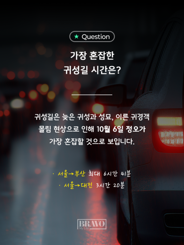 긴 연휴일수록 안전이 우선이다. 출발 전 차량 점검과 충분한 휴식, 교통법규 준수로 안전한 귀성길을 준비해야 한다. 자세한 교통 패턴과 혼잡 시간대는 카드뉴스에서 확인할 수 있다.