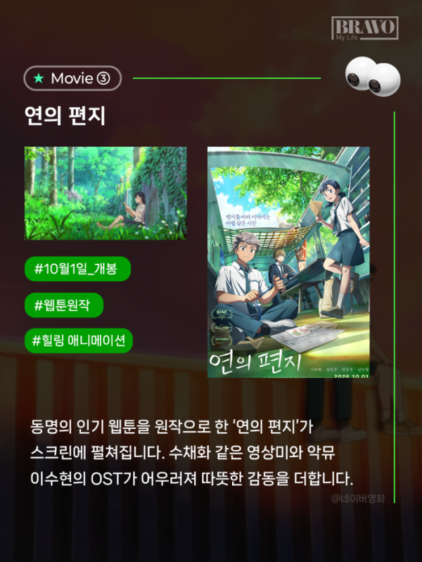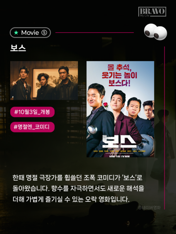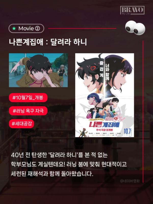 추석 연휴는 온 가족이 함께 모여 웃음과 시간을 나누는 특별한 순간이다. 그러나 부모와 조부모에게는 긴 연휴 동안 아이들과 어떤 추억을 쌓을지 고민이 되곤 한다. 올해 극장가는 이런 고민을 덜어줄 다채로운 작품들이 준비되어 있다. 추석 연휴에 보기 좋은 추천 영화 5선을 카드뉴스로 정리해 봤다.