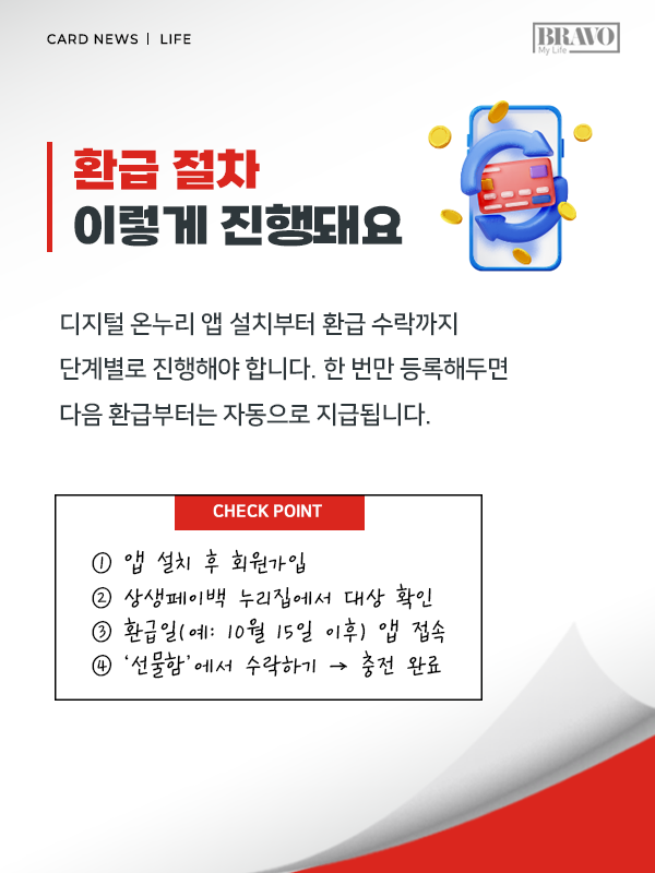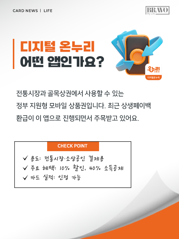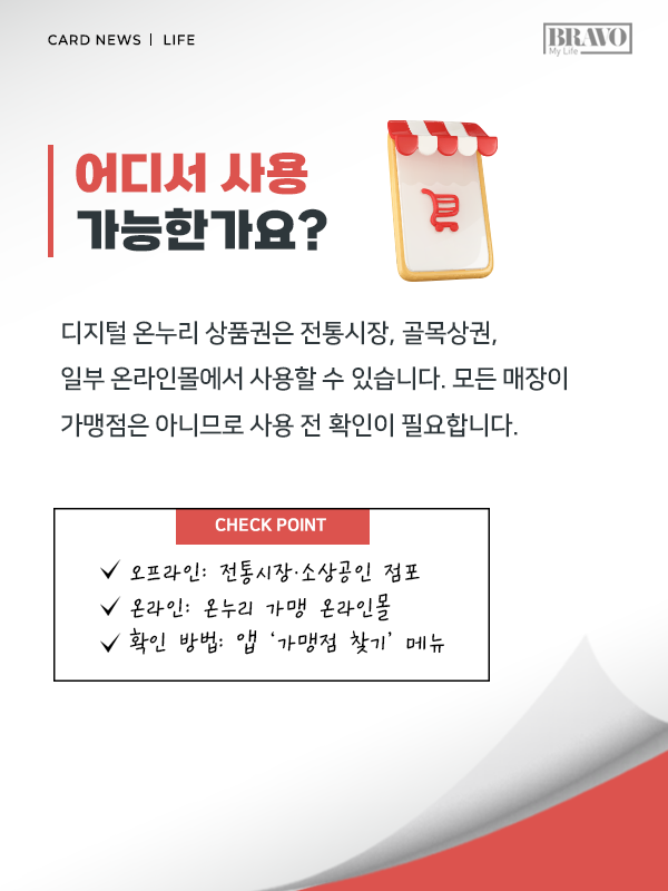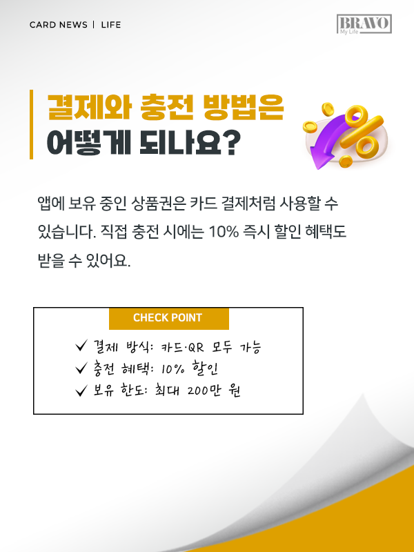 상품권을 받은 뒤 어디서, 어떻게 사용할 수 있을지 막막하다면 카드뉴스를 통해 확인해 보자. 앱 설치부터 결제 방법, 주요 사용처까지 한눈에 이해할 수 있도록 정리했다.