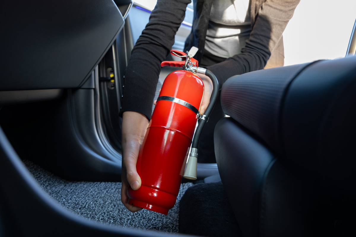 전기차 역시 내연기관차와 동일하게 분말식 차량용 소화기를 갖추면 된다. 스프레이형 간이 소화기나 가정용 소화기는 법적 요건을 충족하지 못한다.