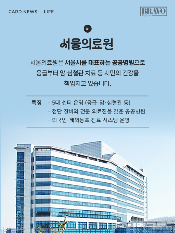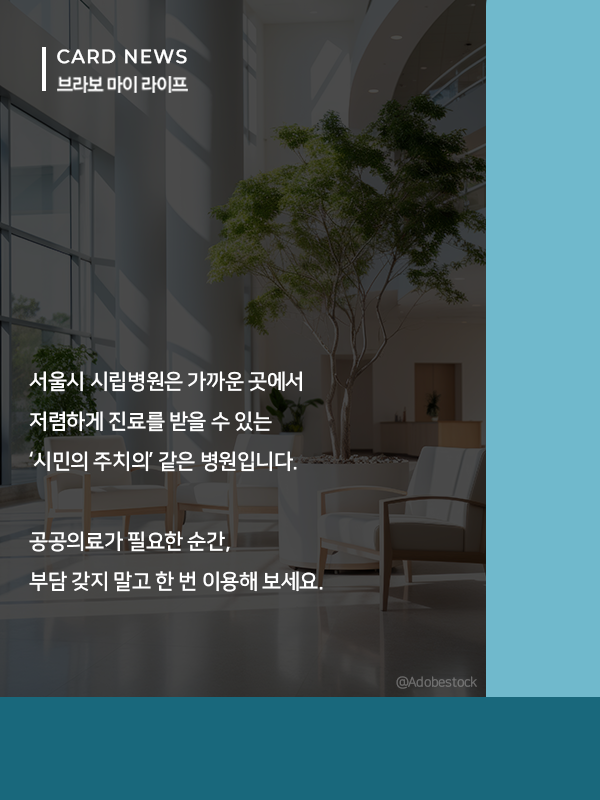 신뢰할 수 있는 공공의료기관을 찾고 있다면, 시립병원을 한 번쯤 경험해 보는 건 어떨까. 서울 시민의 곁을 지키는 병원들을 카드뉴스에 담았다.