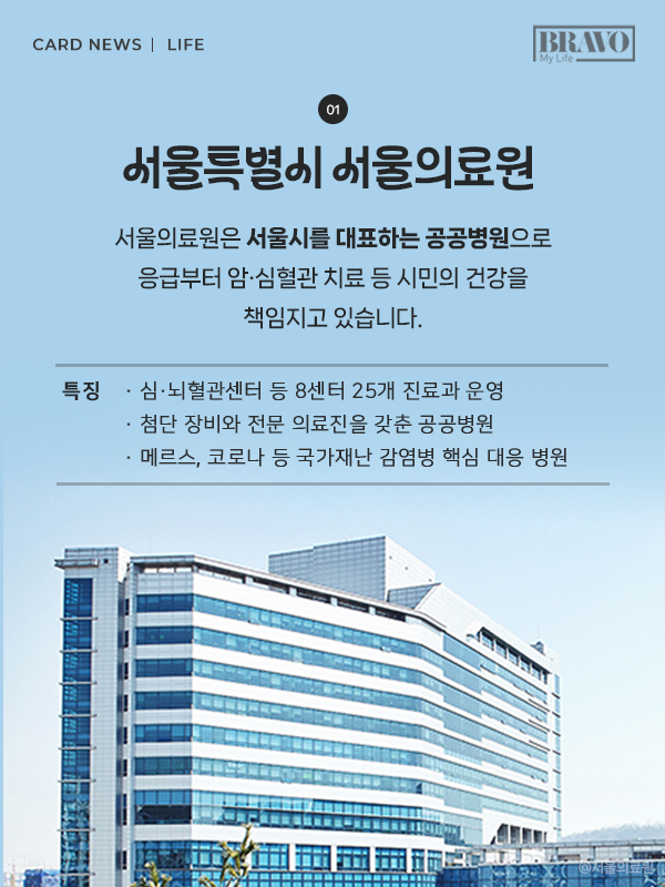 신뢰할 수 있는 공공의료기관을 찾고 있다면, 시립병원을 찾아보는 건 어떨까. 서울 시민의 곁을 지키는 병원들을 카드뉴스에 담았다.