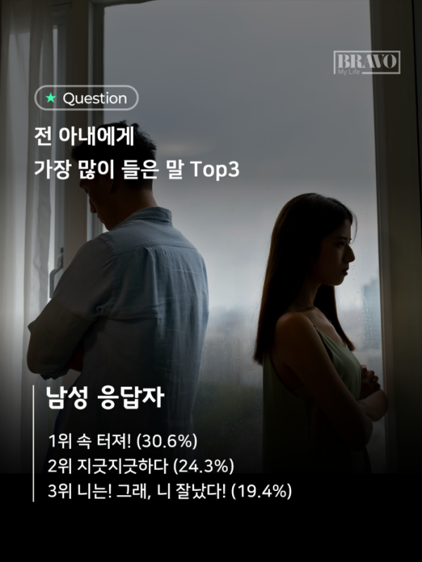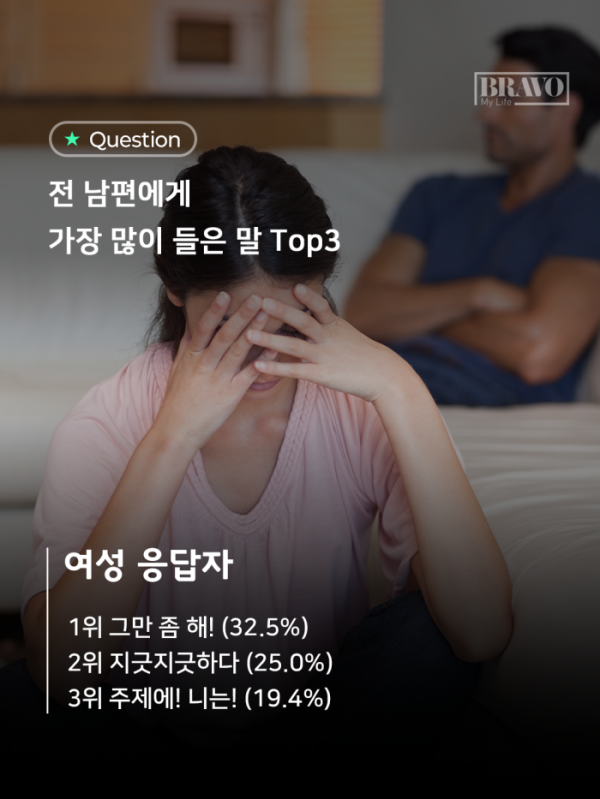 부부 싸움 중 가장 자주 오가는 말은 무엇일까. 재혼정보회사 온리-유가 결혼정보업체 비에나래와 공동으로 (황혼)재혼을 희망하는 돌싱 남녀를 대상으로 실시한 조사에서, 남성은 “속 터져!”, 여성은 “그만 좀 해!”라는 표현을 가장 많이 들은 말로 꼽았다. 응답에 따르면 부부 싸움에서 가장 자주 오간 표현은 감정보다 ‘피로감’을 드러내는 말이 대부분이었다. 시간이 지날수록 말은 습관이 되고, 감정은 그 말 위에 쌓였다.