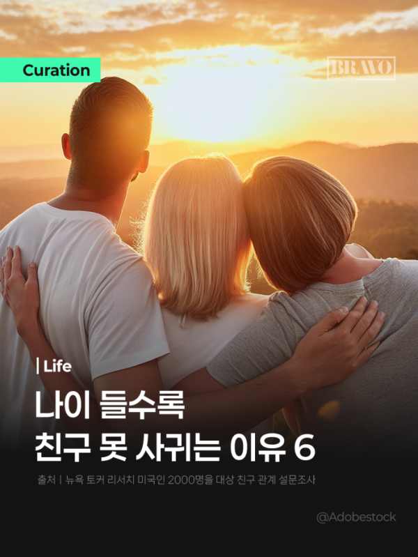 나이가 들수록 새로운 친구를 사귀기 어려워진다는 사실이 조사로 확인됐다. 뉴욕 시장조사업체 토커 리서치 조사에 따르면, 응답자의 69%는 “나이가 들면서 가까운 친구를 만들기가 더 힘들어졌다”고 답했다. 현재 가깝다고 여기는 친구 수는 평균 3.6명 수준에 그쳤다.