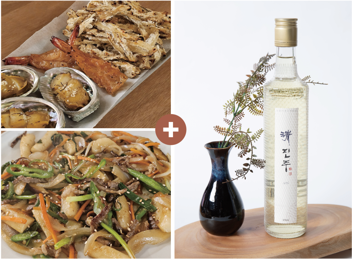 정부로부터 전통주 교육·훈련기관으로 지정돼 많은 가양주인의 배움터이면서 양조장 면허를 내고 고급스러운 약주를 소량 생산 중인 전통주연구개발원(원장 이상균)의 청진주. 이를 판매하는 유록의 각색어포와 궁중떡볶이를 청진주와 페어링했다.