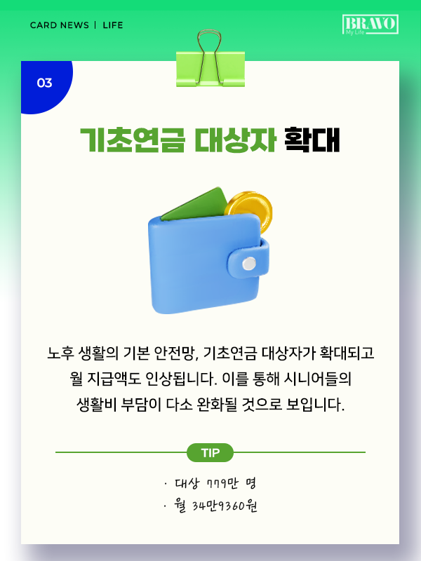 특히 노인 일자리 확대, 의료·요양·돌봄 통합서비스 전국 확대, 기초연금 대상자 증가와 지급액 인상 등은 생활과 밀접하게 연결된 제도들이다. 다만 제도를 미리 알지 못하면 혜택을 놓치기 쉬운 만큼 사전 확인이 중요하다.