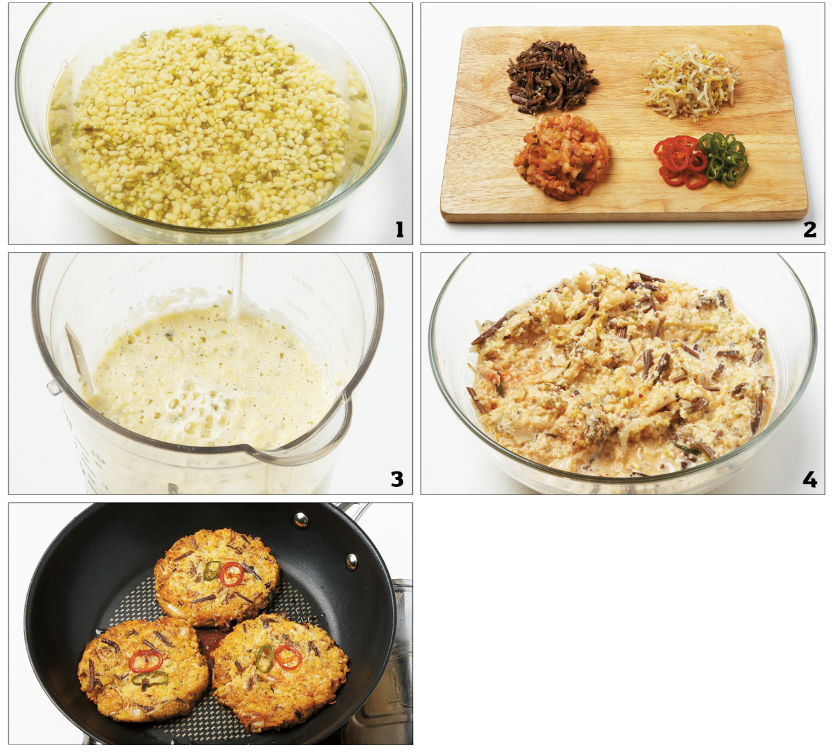 녹두 2컵, 고사리나물·숙주나물·김치 1컵씩, 쌀가루 3큰술