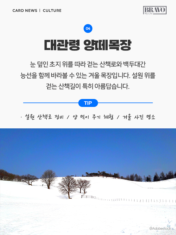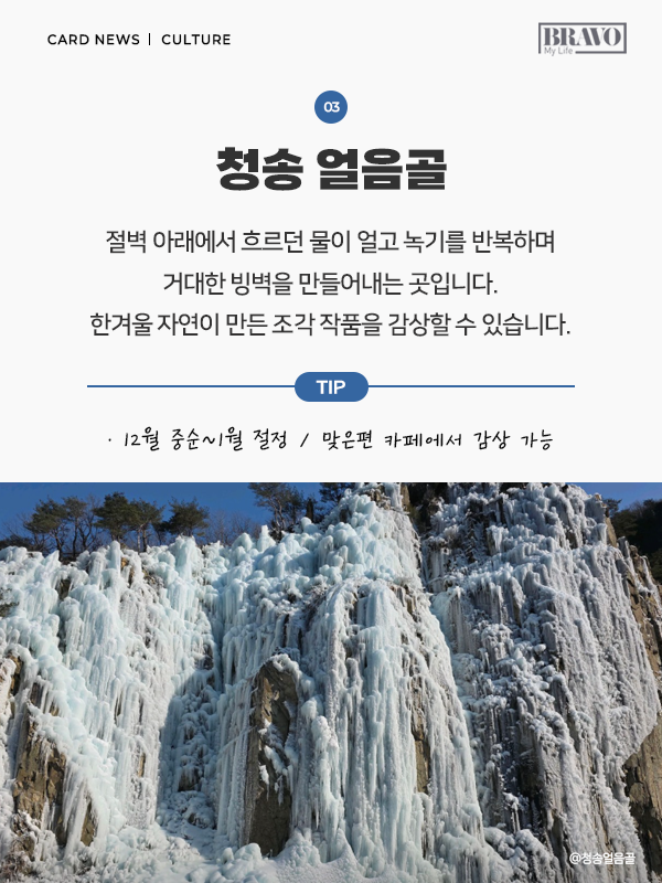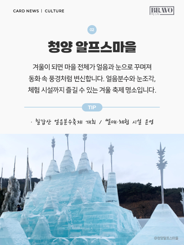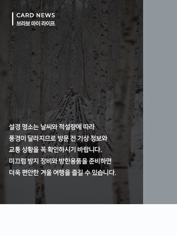 설경은 겨울을 대표하는 풍경이다. 눈 덮인 산과 계곡, 얼음으로 형성된 자연 경관은 매년 겨울철 많은 여행객이 찾는 이유다. 일부는 설경을 보기 위해 해외로 떠나기도 하지만, 국내에도 눈과 얼음을 제대로 즐길 수 있는 겨울 여행지가 다양하게 자리하고 있다. 눈과 얼음이 만들어낸 풍경을 가까운 거리에서 만날 수 있는 국내 설경 명소들은 접근성은 물론 체험 요소까지 갖춰 겨울철 여행지로 주목받고 있다. 산과 계곡, 겨울 축제가 어우러진 대표적인 설경 여행지를 중심으로 국내에서 즐길 수 있는 설경 명소 5곳을 소개한다.